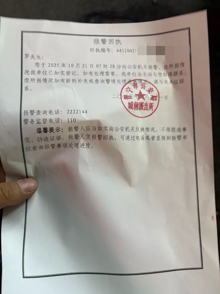 罗先生来自江西,当今在普宁市打工。10月9日,他把我方的“赣”牌车停在了普宁一市集隔邻的大地划线泊车位上。10月20日,当他把车开行运,发现左前轮车胎扁了少量。“我开动没介意,以为是路面歪斜酿成的。”他说,“昨天(21日)早上我发现车胎透顶扁掉了,用手一摸,发现存个‘扎胎钉’。”